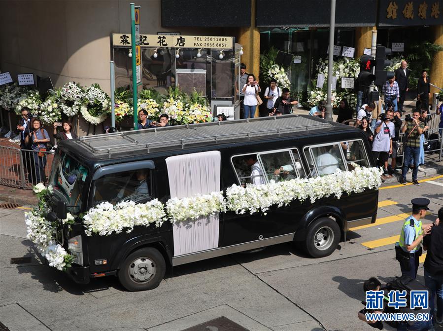 11月13日,金庸的靈車緩緩駛離殯儀館。 當(dāng)日,著名作家金庸在香港殯儀館出殯。 金庸10月30日在香港逝世,享年94歲。 新華社記者 吳曉初 攝