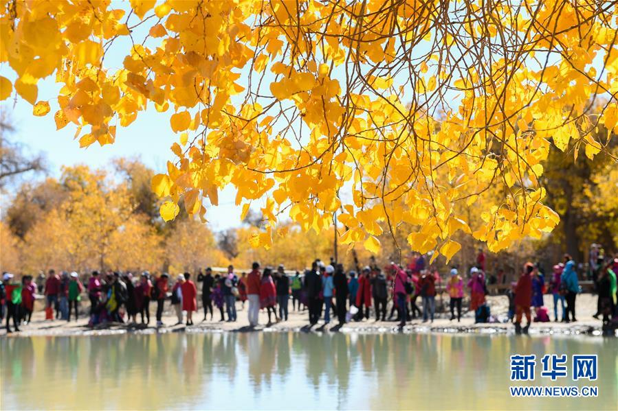 10月10日,在內(nèi)蒙古自治區(qū)額濟(jì)納旗,游客在觀賞胡楊林。 金秋時(shí)節(jié),內(nèi)蒙古自治區(qū)額濟(jì)納旗胡楊林如同披上金裝,成為大漠中的一抹亮色,吸引眾多中外游客前來觀賞游玩。 新華社記者劉磊攝