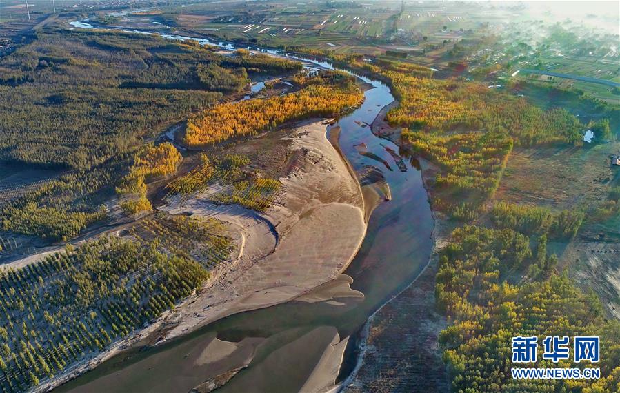 深秋時(shí)節(jié),流經(jīng)河北省樂亭縣的灤河兩岸色彩斑斕,宛如畫境。