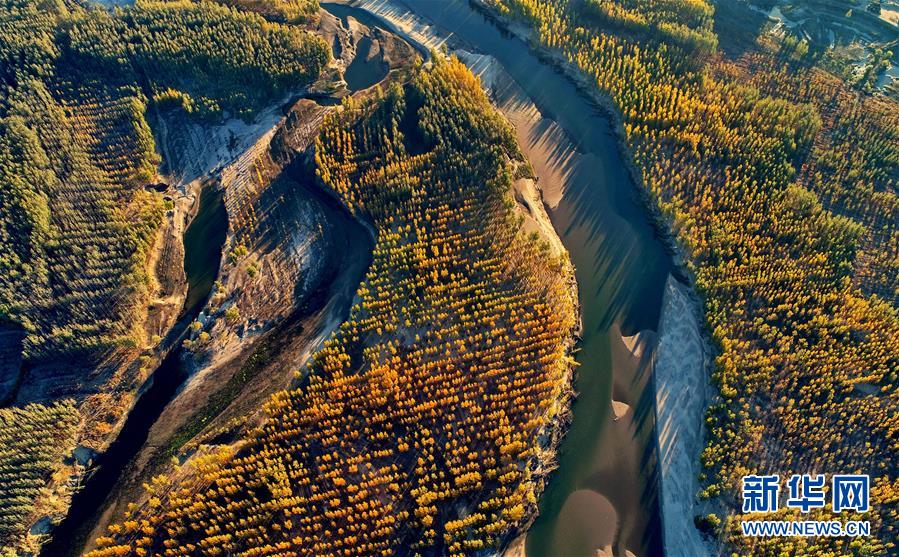 這是河北省樂亭縣境內的灤河秋色(11月6日無人機拍攝)。