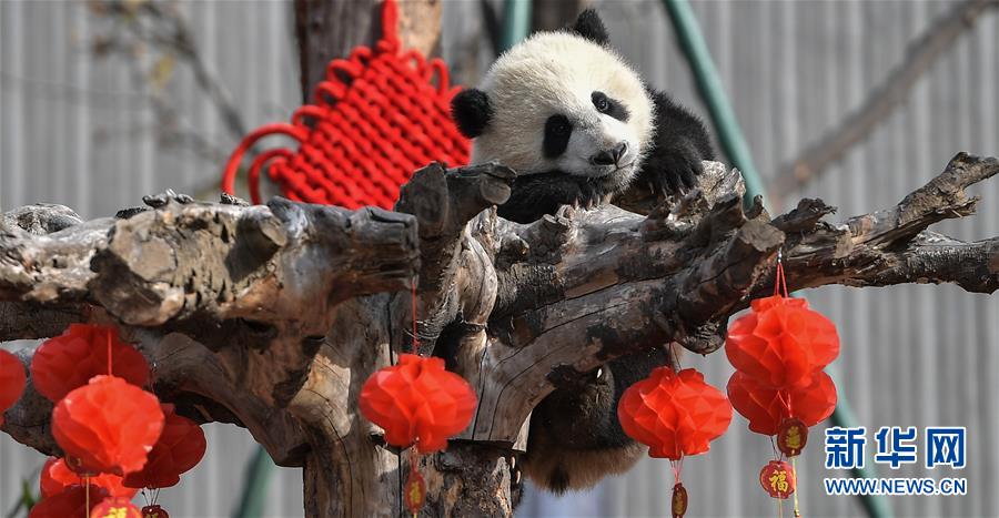 這是在中國大熊貓保護(hù)研究中心臥龍神樹坪基地拍攝的大熊貓(2018年2月15日攝)。 新華社記者 薛玉斌 攝
