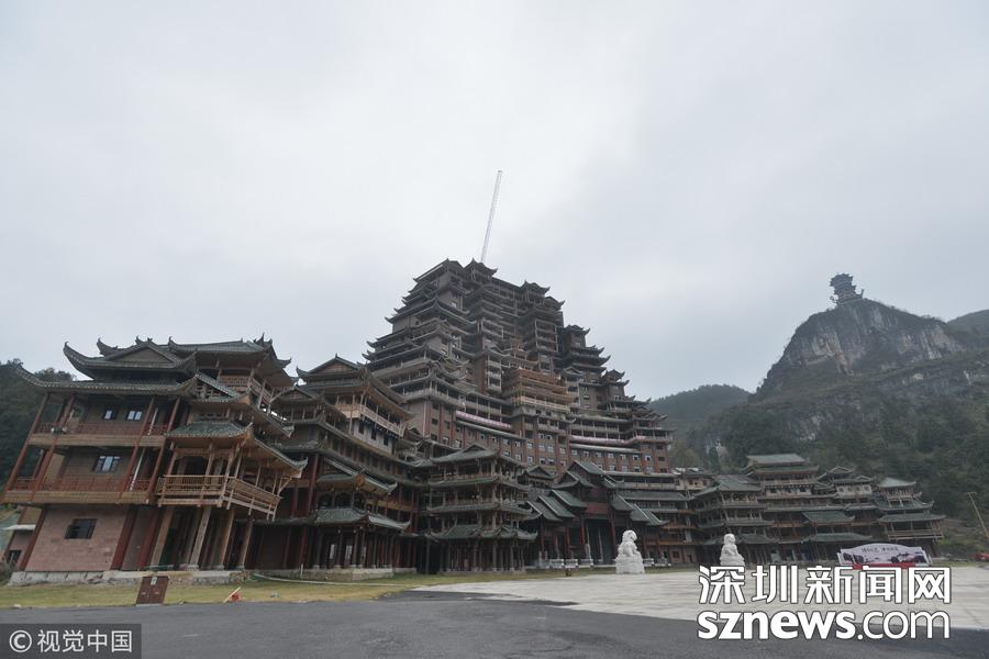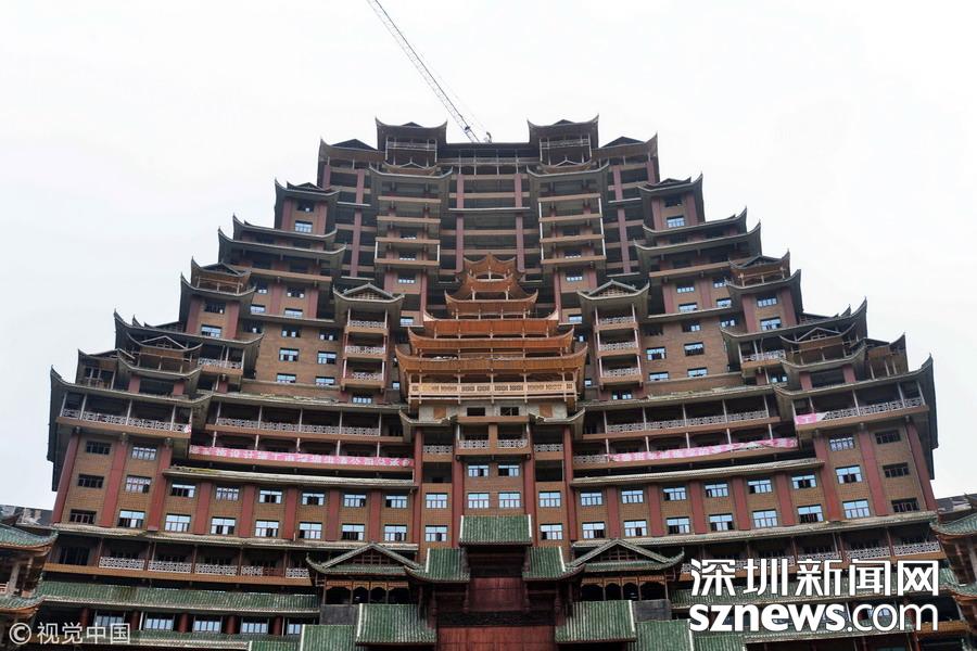 深圳新網(wǎng)網(wǎng)訊 始建于2016年9月的貴州省獨(dú)山縣水司樓已進(jìn)入工程收尾階段。雄偉壯麗造型別致的水司樓,是集會(huì)展博覽、酒店住宿、游覽觀光等于一體的大型綜合體。除具有水族特色元素外,該建筑還融合了苗族、布依族特色,是獨(dú)山縣凈心谷景區(qū)最具標(biāo)志性的宏大建筑。該樓占地面積5900平方米,總建筑面積60000平方米,樓高99.9米,共24層,是世界上最高大最大最壯觀的水族建筑,被稱為“天下第一水司樓”。 水司樓是按照水族依山畔水而居的傳統(tǒng)習(xí)俗和建筑特征修建,是水族人民的文化符號(hào)和智慧的象征,背靠凈心河谷山脊,以弧形的平面布局模式,如同張開懷抱的巨人,緊擁美麗的姻脂河灣,設(shè)計(jì)巧妙,工藝精巧。