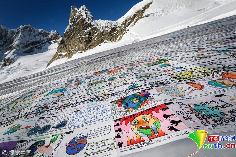 “少女峰”上展示的十萬多張明信片,呼吁關(guān)注氣候變暖。