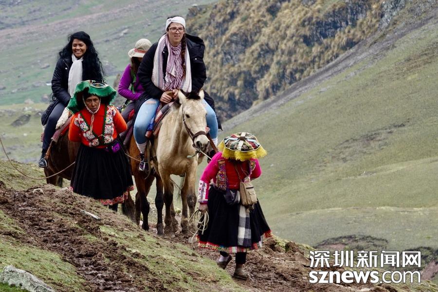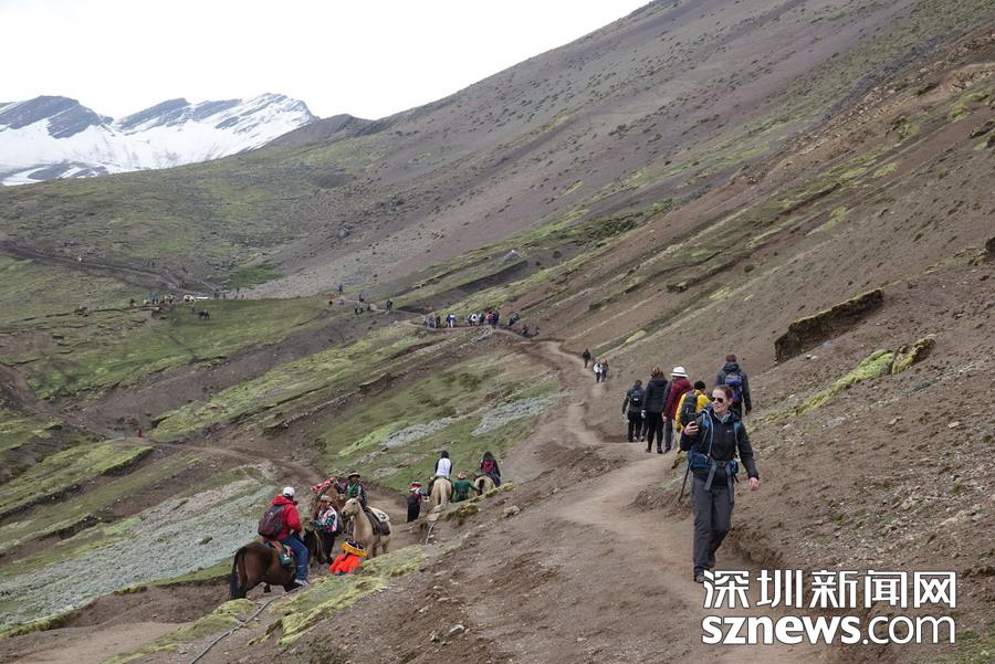 深圳新聞網(wǎng)訊 彩虹山被當(dāng)?shù)厝朔Q為維昆尼卡。深藏于秘魯庫斯科古城附近的安第斯山脈之中,多年來它一直隱藏在冰雪之下,據(jù)說是因為溫室效應(yīng),雪線升高露出真容,才于2016年被發(fā)現(xiàn),并迅速成為世界知名景點(diǎn)。這里可以觀賞到的還有冰川、高山草甸、羊駝以及當(dāng)?shù)厣贁?shù)民族的風(fēng)情。李仁奇攝