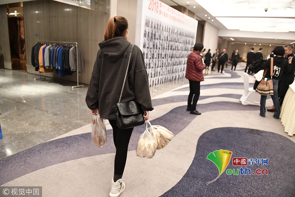 2018年11月20日,山東日照,一位培訓(xùn)機構(gòu)老師買來不少外賣,她介紹,這是給學(xué)生路上吃的,活動結(jié)束他們就會立即趕往下一個目的地,參加另一個比賽。圖片作者:視覺中國