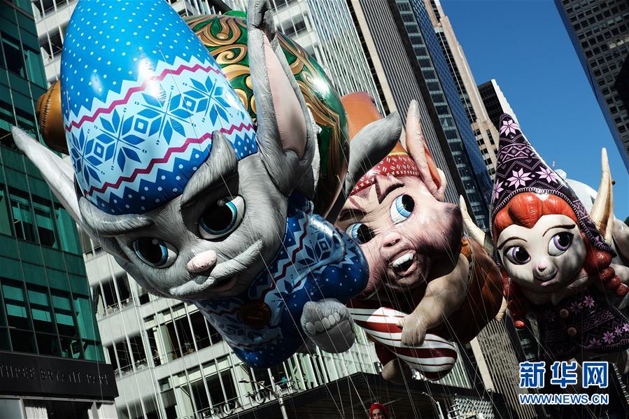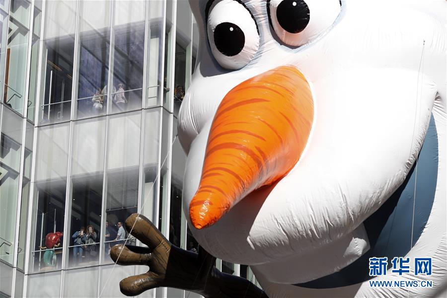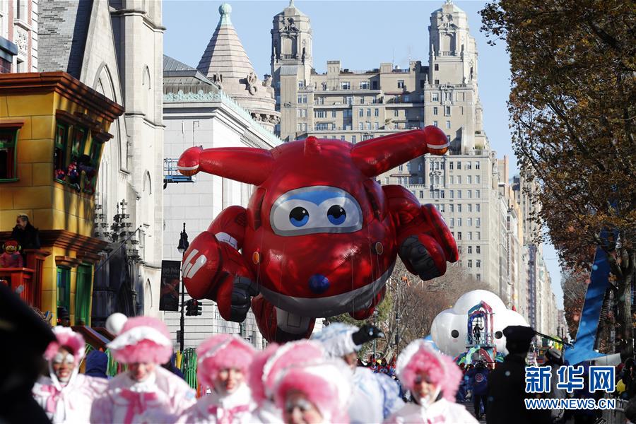當(dāng)日,第92屆梅西感恩節(jié)大游行在紐約舉行,各式各樣的玩偶?xì)馇颉⒒ㄜ?chē)隊(duì)伍在曼哈頓的摩天大樓間穿行,吸引數(shù)百萬(wàn)民眾前來(lái)觀看。梅西感恩節(jié)大游行始于1924年,是全美規(guī)模最大的感恩節(jié)游行。