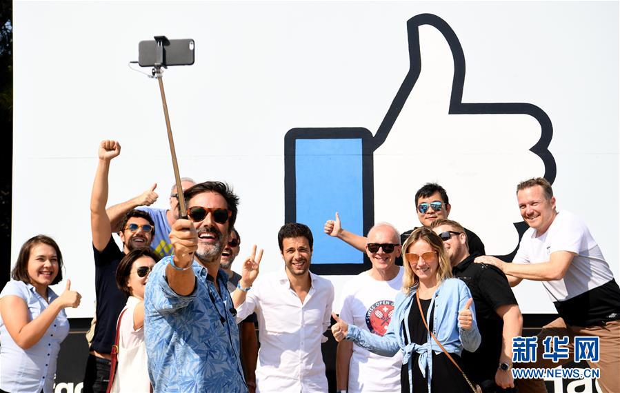 8月11日,在美國(guó)舊金山灣區(qū),參加“臉書(shū)節(jié)”的游客在臉書(shū)園區(qū)標(biāo)志前合影。當(dāng)日,舊金山灣區(qū)臉書(shū)園區(qū)舉行“臉書(shū)節(jié)”,人們?cè)诨顒?dòng)中欣賞文藝表演,品嘗美食,乘坐游樂(lè)設(shè)施等,活動(dòng)收入將捐給慈善團(tuán)體。新華社記者吳曉凌攝