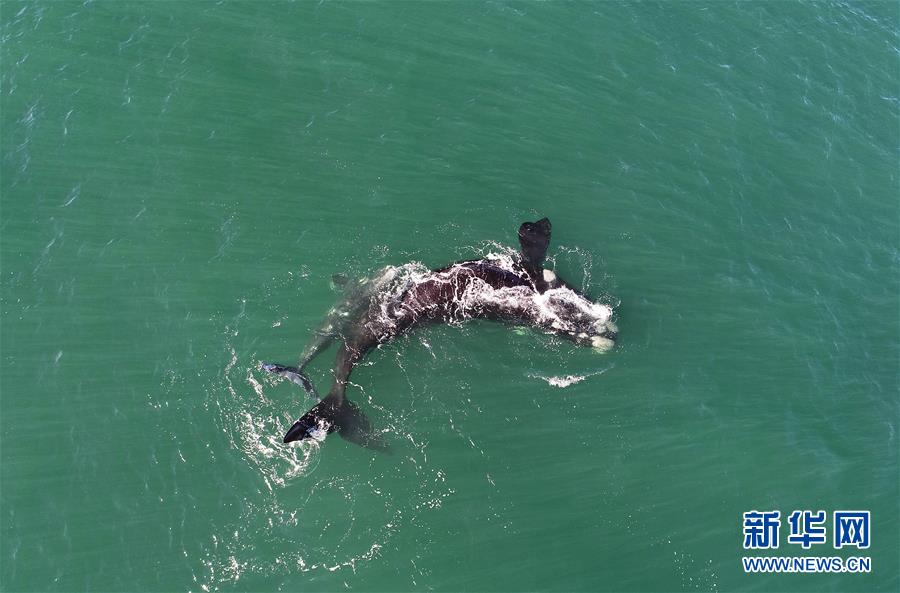 9月30日,在南非赫曼紐斯小鎮(zhèn)附近海面上,2頭南露脊鯨在海岸邊暢游。9月29日,位于開(kāi)普敦以東約115公里的赫曼紐斯小鎮(zhèn)迎來(lái)2018年的鯨魚(yú)節(jié),來(lái)自世界各地的游客可乘船出海觀鯨,也可在岸邊等待鯨魚(yú)的到來(lái)。新華社記者陳誠(chéng)攝