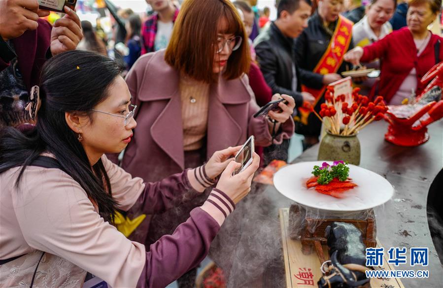 10月19日,重慶火鍋美食文化節(jié)現(xiàn)場展出的各色火鍋菜品吸引眾人拍攝。 當日,第十屆中國(重慶)火鍋美食文化節(jié)在重慶市江北區(qū)正式開幕。本屆火鍋美食文化節(jié)為期4天,以“麻辣happy城市節(jié)日”為主題,50000平方米的展區(qū)吸引了70余個火鍋品牌、300余家火鍋供應(yīng)鏈企業(yè)參展,萬人同燙火鍋的盛況在“火鍋之都”重慶再現(xiàn)。 新華社記者 劉潺 攝