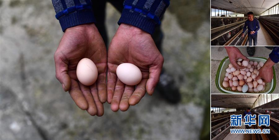 拼版照片:左圖為貧困戶李先強(qiáng)手捧養(yǎng)殖合作社生產(chǎn)的雞蛋(11月19日攝);右圖為李先強(qiáng)在雞舍里撿雞蛋(照片均攝于11月19日)。李先強(qiáng)是融水苗族自治縣香粉鄉(xiāng)香粉村的貧困戶,從2016年開(kāi)始,他和15個(gè)貧困戶一起發(fā)展土雞養(yǎng)殖。目前合作社養(yǎng)有3000多只雞,年產(chǎn)雞蛋1萬(wàn)多斤。 廣西融水苗族自治縣是國(guó)家扶貧工作重點(diǎn)縣,全縣“九山半水半分田”,生活生產(chǎn)環(huán)境較為惡劣,脫貧攻堅(jiān)任務(wù)艱巨,目前還有7.68萬(wàn)貧困人口。面對(duì)經(jīng)濟(jì)發(fā)展落后、貧困面廣且程度深的現(xiàn)狀,當(dāng)?shù)匕衙撠毠?jiān)與創(chuàng)新產(chǎn)業(yè)扶持相結(jié)合,依托生態(tài)資源優(yōu)勢(shì),實(shí)施“特色產(chǎn)業(yè)富民行動(dòng)”,通過(guò)發(fā)展特色民族旅游、林下經(jīng)濟(jì)和特色養(yǎng)殖業(yè)等扶貧產(chǎn)業(yè),帶動(dòng)貧困群眾依靠勤勞的雙手,拔窮根摘窮帽,實(shí)現(xiàn)脫貧致富。據(jù)了解,目前全縣貧困戶參與特色產(chǎn)業(yè)發(fā)展的有2.9萬(wàn)戶,扶貧產(chǎn)業(yè)覆蓋率達(dá)95%。 新華社記者 黃孝邦 攝