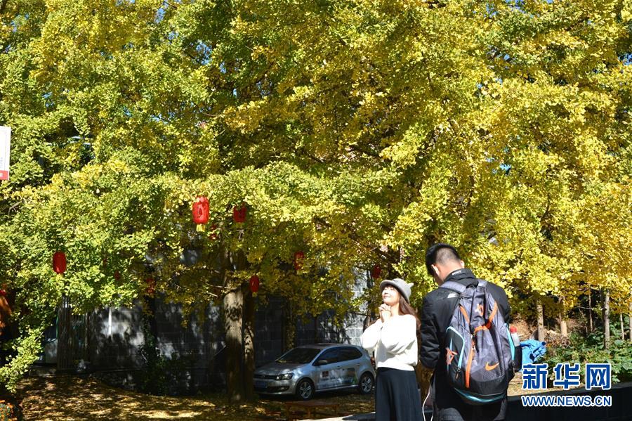 游客在騰沖“銀杏村”觀賞游玩(11月15日攝)。