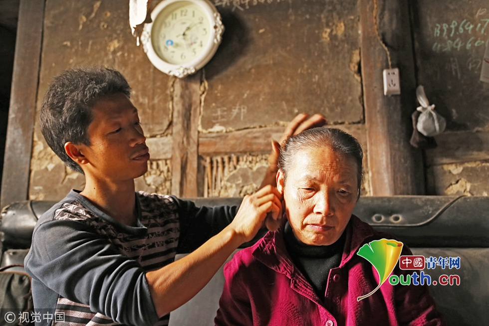 37歲的王顯強(qiáng),家在重慶市綦江區(qū)永新鎮(zhèn)伏牛村。23年前,王顯強(qiáng)的母親田井貴意外摔倒導(dǎo)致全身癱瘓,吃喝拉撒全由王顯強(qiáng)的父親照顧。2003年,王顯強(qiáng)的父親去世,深受打擊的田井貴從此開始不再和外人說話?!拔覌尵褪俏业娜?!”原本在浙江打工的王顯強(qiáng)回到家里,為了養(yǎng)活自己和母親,他決定背著母親到重慶主城打工。從此,身材不高的王顯強(qiáng),用自己不算厚實(shí)的后背,讓母親有了新的依靠。