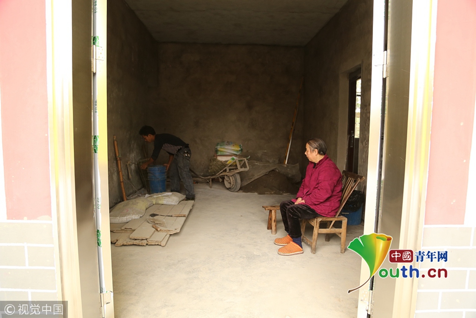 由于有王顯強(qiáng)的精心照顧,田井貴雖然癱瘓不能走路,但從未生過大病,連感冒也很少有。今年8月,因?yàn)楣S放假,王顯強(qiáng)背著母親回到老家。但是老家的房子因?yàn)槌D隉o人居住,已經(jīng)倒塌。王顯強(qiáng)母子暫時(shí)借住在叔叔王正章家里。村里的鄰居們很關(guān)心王顯強(qiáng)母子,每天總有人來和田井貴說說話,問她認(rèn)不認(rèn)識自己,雖然田井貴幾乎不開口,但她的精神狀態(tài)明顯更好了?!皨寢屵€是喜歡在老家?!笨吹侥赣H的變化,王顯強(qiáng)知道母親的心思,他決心為母親建新房。
