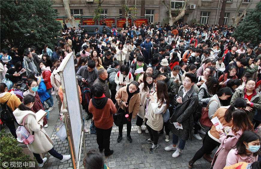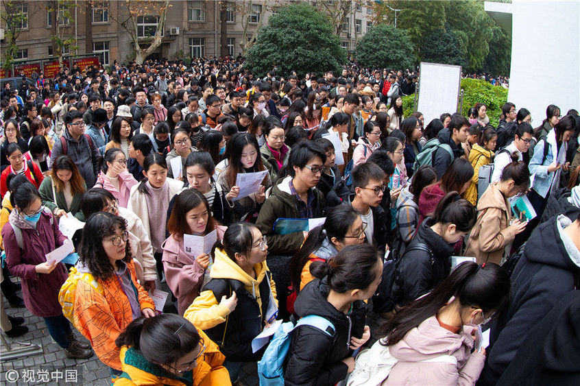 2018年12月2日,湖北武漢一公務(wù)員考點(diǎn),密密麻麻的考生進(jìn)向考場(chǎng)。當(dāng)日,2019年度中央機(jī)關(guān)及其直屬機(jī)構(gòu)公務(wù)員招考筆試開考。楚林/視覺中國(guó)