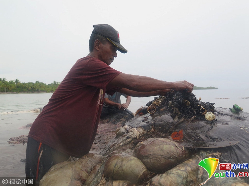 擱淺鯨的肚子里滿(mǎn)是塑料垃圾。