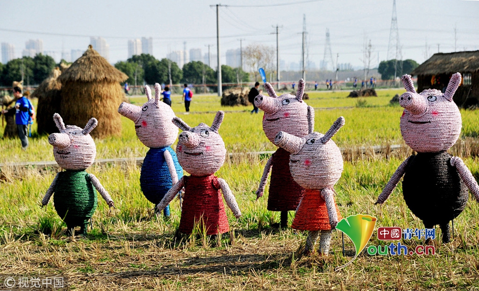 小豬佩奇稻草雕塑成網(wǎng)紅 市民游客紛紛來打卡