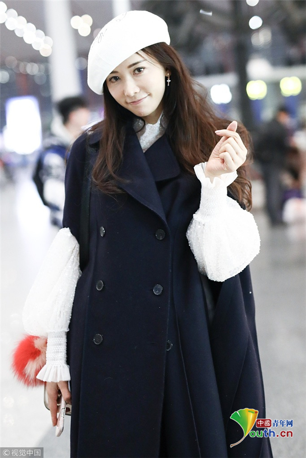 11月19日,北京,林志玲現(xiàn)身機場,林志玲穿黑色大衣配貝雷帽溫暖俏皮,揮手賣萌露修長美腿女神氣質(zhì)爆棚。