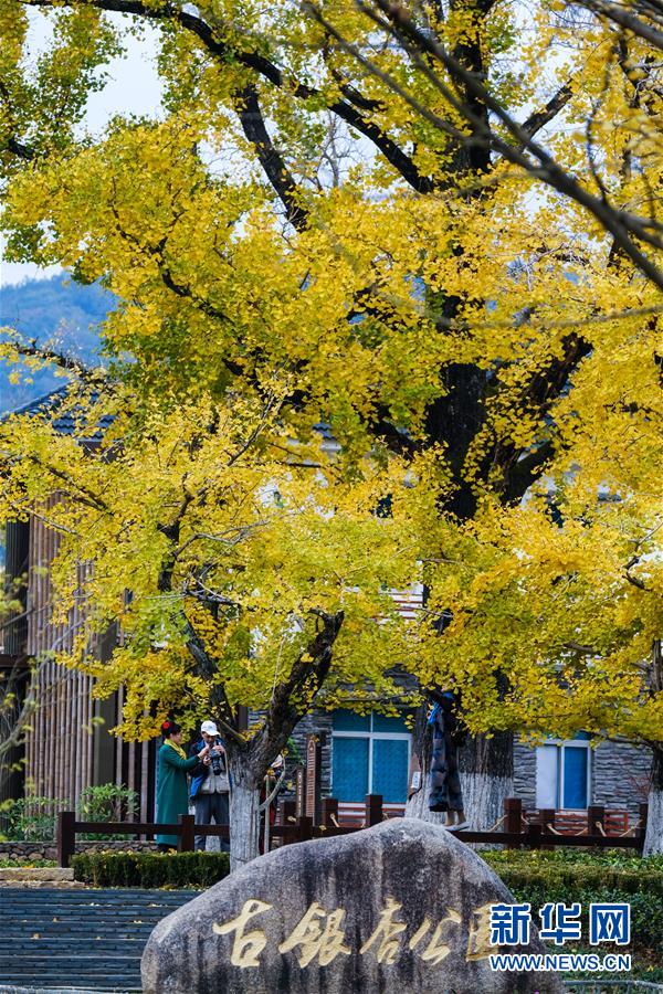 11月1日,游客在河南省嵩縣白河鄉(xiāng)下寺村古銀杏樹下拍照。 深秋時(shí)節(jié),河南省嵩縣白河鄉(xiāng)下寺村的古銀杏林為小山村披上了“金甲”。漫天黃葉,遍地金色,一幢幢民居掩映在色彩斑斕的世界里,美不勝收,吸引了眾多游客賞景拍照。 新華社記者 李安 攝