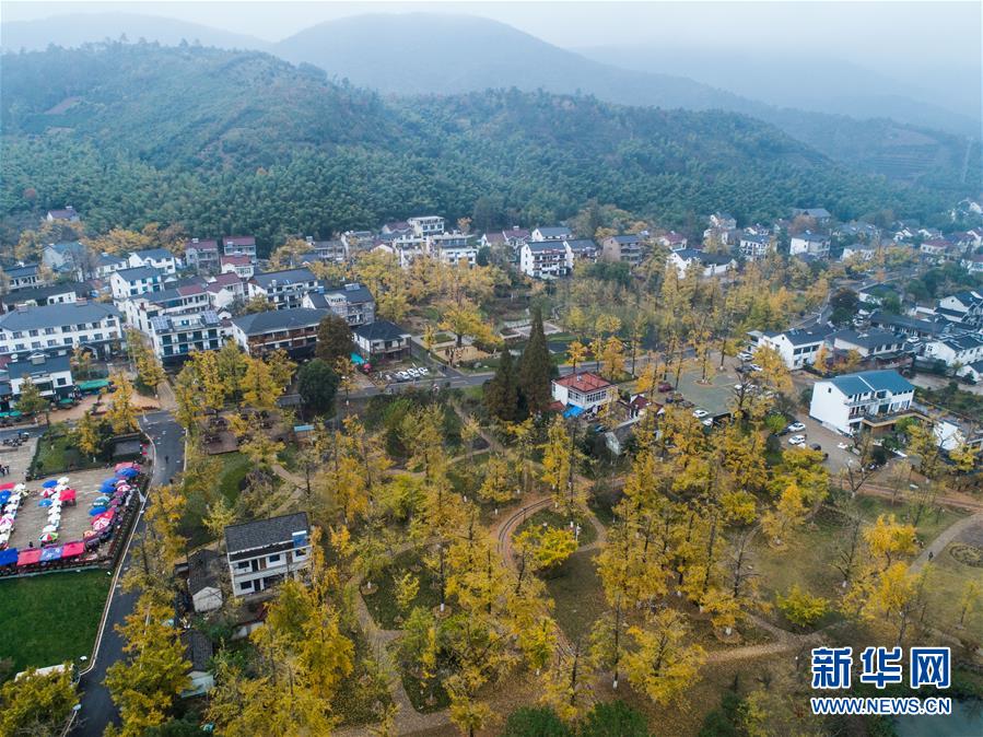空中俯瞰十里銀杏林長廊(11月16日無人機拍攝)。近日,在浙江省長興縣小浦鎮(zhèn),“十里銀杏長廊”和近千畝花海經(jīng)過近一年的升級改造后,以嶄新的面貌與游客見面。花海、觀光小火車、古村民宿、銀杏長廊等旅游項目全面提升了小浦鎮(zhèn)鄉(xiāng)村旅游的品質(zhì)。新華社記者 徐昱 攝
