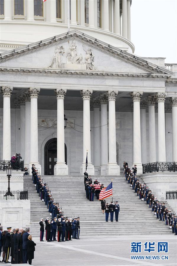 12月5日,在美國首都華盛頓,美國前總統(tǒng)喬治·赫伯特·沃克·布什的靈柩離開國會大廈。