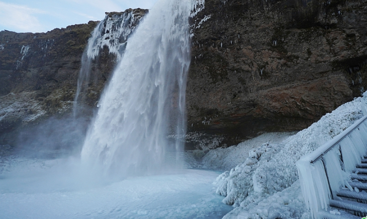 冰島瀑布結(jié)冰畫面震撼 如天外仙境