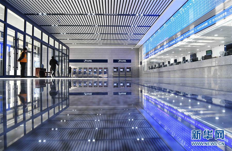 這是牡丹江新站的售票大廳(12月6日攝)。 12月6日,由中鐵二十二局承建的中國(guó)“八縱八橫”最北“一橫”樞紐高鐵站——牡丹江新站正式竣工,預(yù)計(jì)今年底與哈牡高鐵同步開(kāi)通運(yùn)營(yíng)。新站建筑面積29515平方米,站房以“國(guó)花牡丹”為主立面造型,并融入歐洲建筑元素進(jìn)行重新設(shè)計(jì),極具風(fēng)情。 新華社記者王建威攝