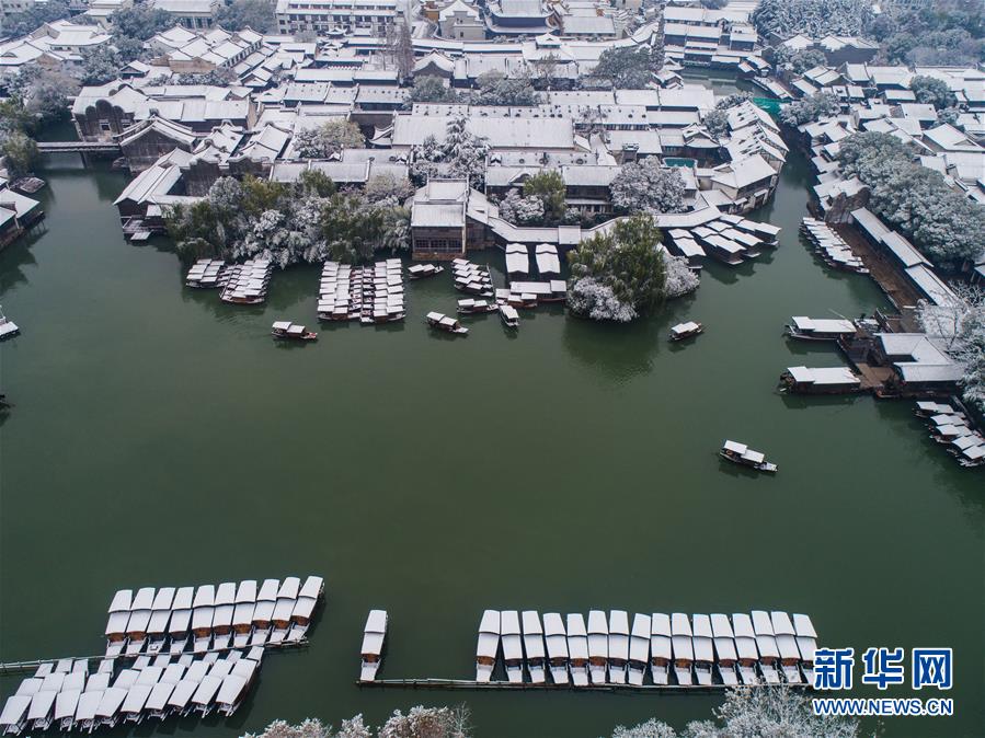 12月9日,空中俯瞰被白雪覆蓋的烏鎮(zhèn)景區(qū)(無人機拍攝)。 受冷空氣影響,浙江省桐鄉(xiāng)市迎來大范圍降雪,千年古鎮(zhèn)烏鎮(zhèn)被厚厚的白雪覆蓋。小橋流水、白墻黑瓦的江南水鄉(xiāng)古鎮(zhèn),呈現出冬日雪鄉(xiāng)的獨特韻味,吸引各地游客前來觀賞。 新華社記者 徐昱 攝