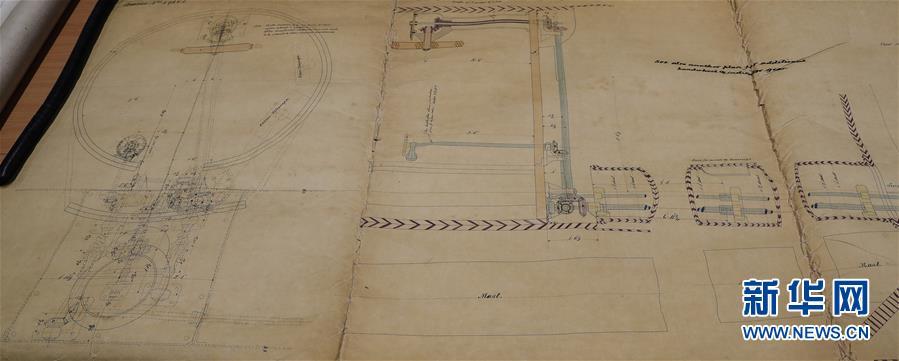 這是11月2日在英國紐卡斯爾的泰恩—威爾檔案館拍攝的致遠艦設計圖紙。 新華社記者日前在紐卡斯爾泰恩—威爾檔案館查找北洋海軍史料時發(fā)現(xiàn)一套七張、檔案名為“中國巡洋艦舵機設計圖”的原始圖紙。塵封百年,甲午海戰(zhàn)中抗擊日艦后沉沒的清北洋海軍致遠艦部分原廠設計圖紙在其建造地——英國紐卡斯爾市的一家檔案館首次被發(fā)現(xiàn),為打撈那段悲壯的歷史提供了重要參考。 新華社記者 韓巖 攝