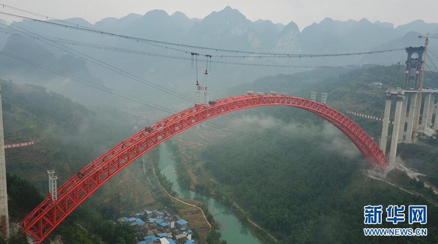 9月12日使用無人機(jī)拍攝的大小井特大橋。目前,橫跨在貴州省羅甸縣大井河上的大小井特大橋建設(shè)進(jìn)入沖刺階段。大小井特大橋全長1.5公里,主跨450米,是世界最大跨徑上承式鋼管混凝土拱橋。據(jù)了解,該橋是平塘至羅甸高速公路關(guān)鍵性工程,對(duì)打通貴州“斷頭路”,助推滇黔桂石漠化片區(qū)脫貧攻堅(jiān)具有重要意義。新華社記者劉續(xù)攝