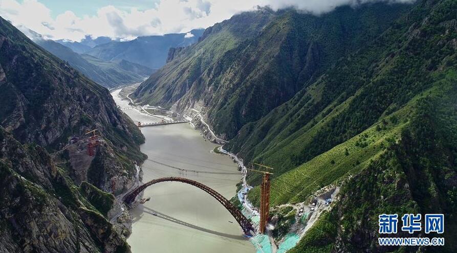 9月28日無人機(jī)拍攝的川藏鐵路拉林段重點(diǎn)標(biāo)志性工程藏木特大橋。當(dāng)日,隨著最后一節(jié)鋼管拱的對(duì)位和鎖定完畢,川藏鐵路拉林段藏木特大橋成功合龍,標(biāo)志著大橋主體結(jié)構(gòu)施工取得了關(guān)鍵性勝利。藏木特大橋由中國中鐵廣州局集團(tuán)承建,拱高112米,橋橫跨雅魯藏布江峽谷,水深66米。新華社記者普布扎西攝