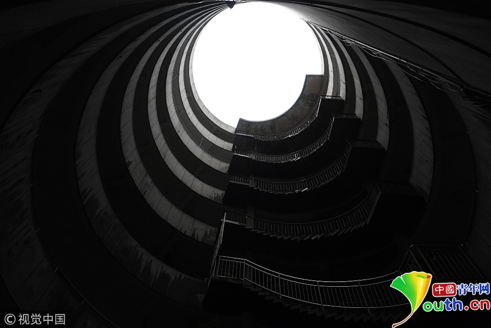 2017年9月27日,重慶,南岸區(qū)某小區(qū)的“螺旋”停車場(chǎng),從公路到車庫(kù)要下5層樓,司機(jī)需要轉(zhuǎn)無(wú)數(shù)個(gè)360度圈。圖片來(lái)源:視覺(jué)中國(guó)