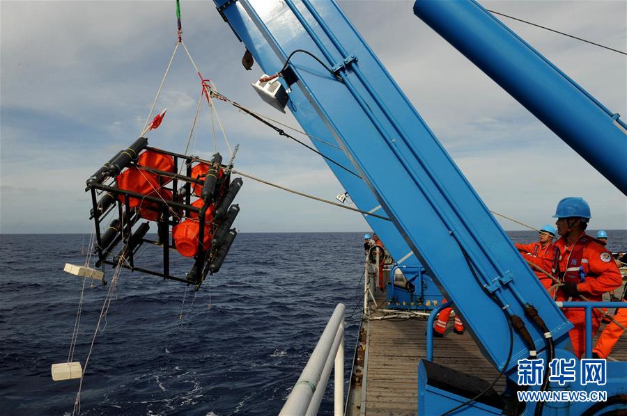 考察隊(duì)員將負(fù)責(zé)采集海水的“彩虹魚(yú)”第二代著陸器回收到甲板(12月11日攝)。 由上海海洋大學(xué)和西湖大學(xué)聯(lián)合組成的“彩虹魚(yú)”科考團(tuán)隊(duì),12月11日在全球最深的海溝——馬里亞納海溝成功完成兩臺(tái)“彩虹魚(yú)”第二代著陸器的萬(wàn)米級(jí)海試,深度分別為10918米和10899米。 新華社記者 張建松 攝