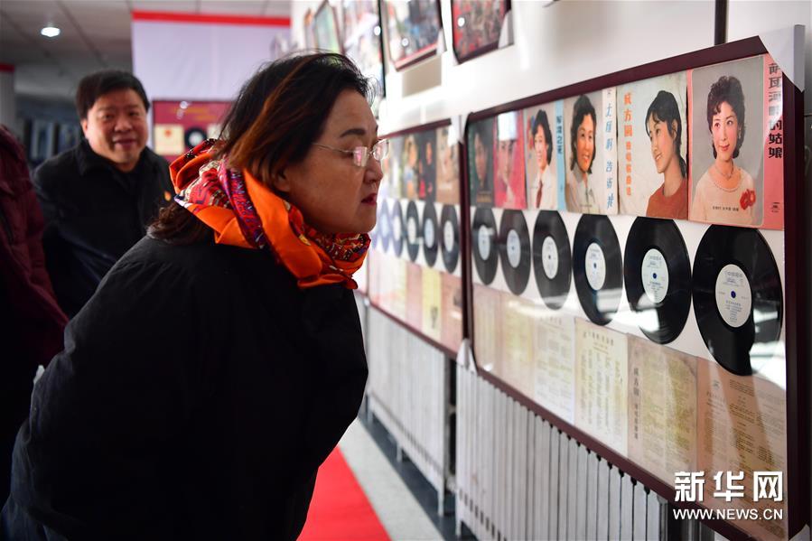 12月12日,觀眾在洛陽隋唐百戲城觀看展出的電影海報(bào)與老唱片。新華社記者馮大鵬攝