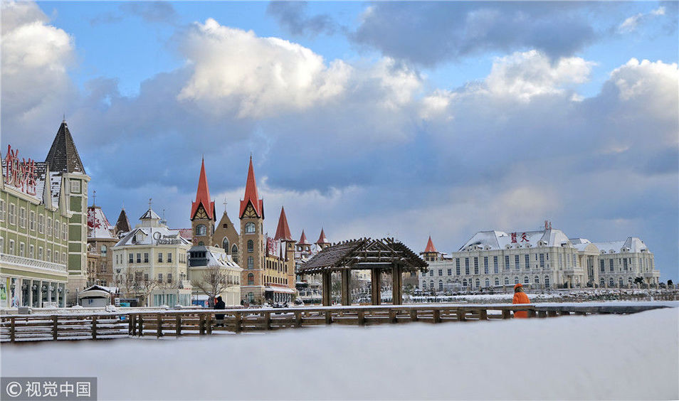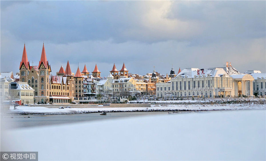 2018年12月7日,山東煙臺,雪后的海濱景色。當(dāng)日煙臺迎來今冬首場降雪,海濱建筑在大雪的裝點下,形成海濱城市獨有的美麗雪景。地處膠東半島的煙臺,冬季降雪量遠(yuǎn)高于地理位置相近的其他地區(qū),形成了獨特的海濱雪城,是中國著名的“雪窩”。唐克/視覺中國