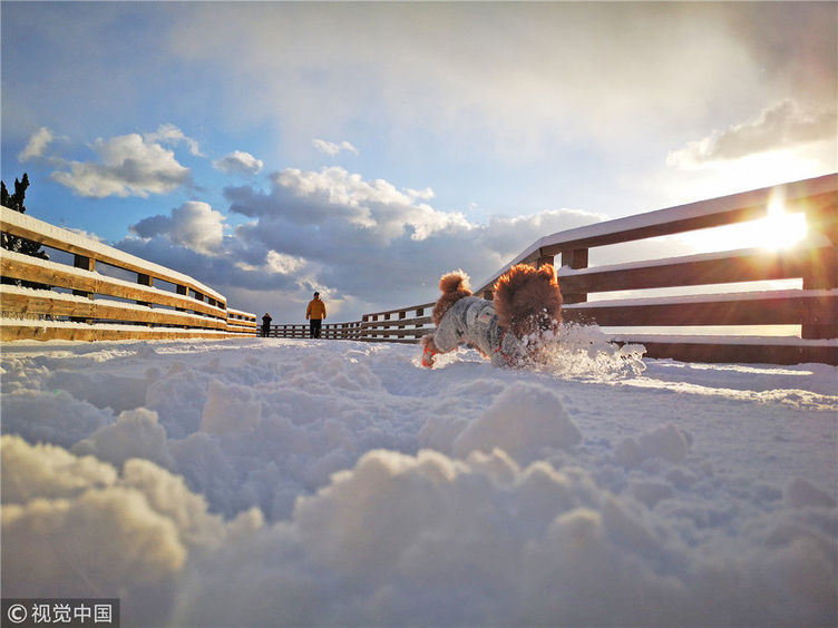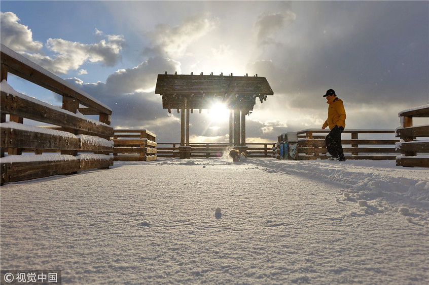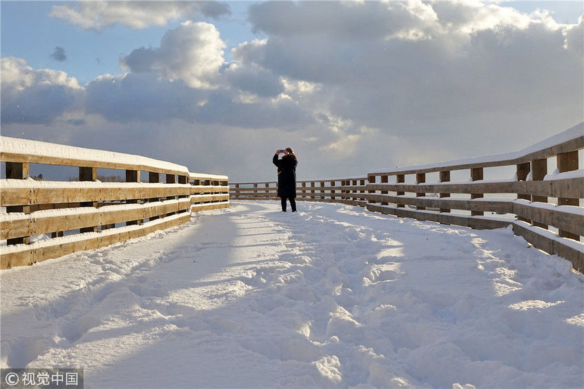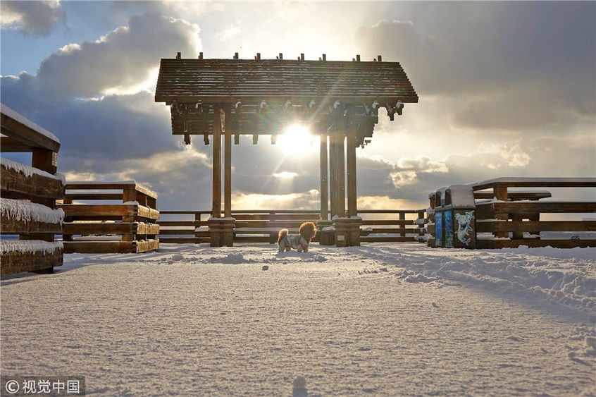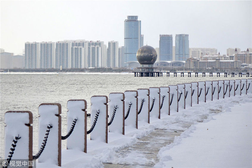 山東煙臺迎來初雪 獨特的海濱雪景美若童話