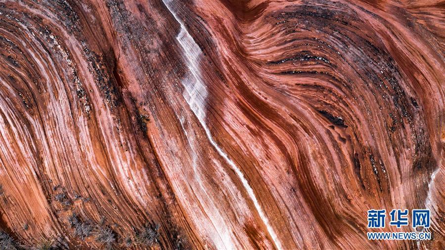 2018年10月21日在陜西省延安市安塞區(qū)坪橋鎮(zhèn)航拍的王家灣丹霞地貌。 大地之色,俯仰之間;壯美山河,是我的祖國(guó)。2018年,新華社記者操縱無(wú)人機(jī)“飛閱”華夏大地,在最美的時(shí)節(jié),定格下她的色彩斑斕。 新華社記者 陶明 攝