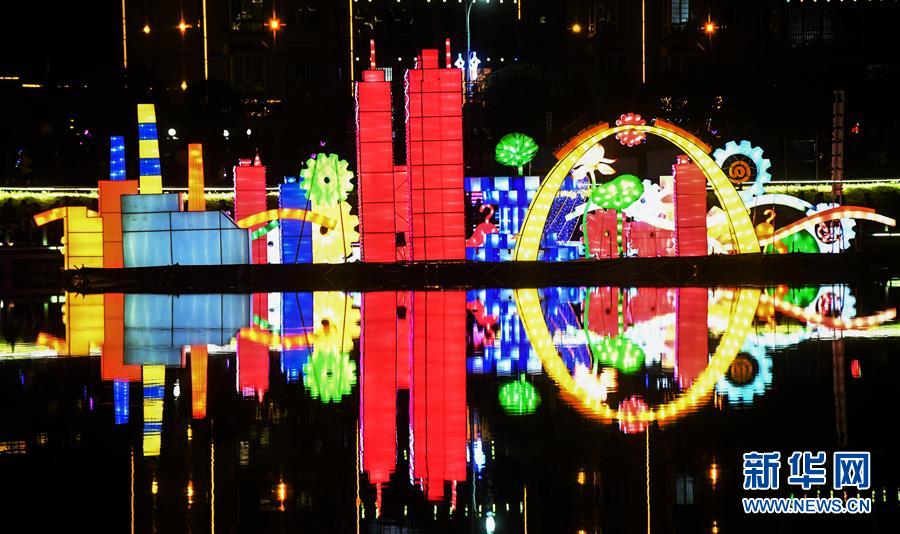荔浦河中的花燈(12月17日攝)。 新華社記者張愛林攝