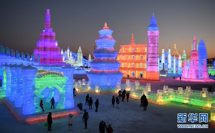 當(dāng)日,第二十屆哈爾濱冰雪大世界開園迎客,向來自全世界的游客展現(xiàn)“流光溢彩”的冰雪奇觀。第二十屆哈爾濱冰雪大世界總占地面積60萬平方米,用冰量11萬立方米,用雪量12萬立方米。上百個景觀群、30余處互動娛樂項(xiàng)目及數(shù)百場精彩活動,構(gòu)成了一場冰雪盛宴。 新華社記者王建威攝