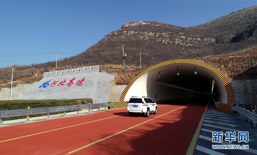 12月16日,一輛汽車行駛在京秦高速公路二期工程河北玉田境內(nèi)的鳳凰頂隧道路段(無人機(jī)拍攝)。