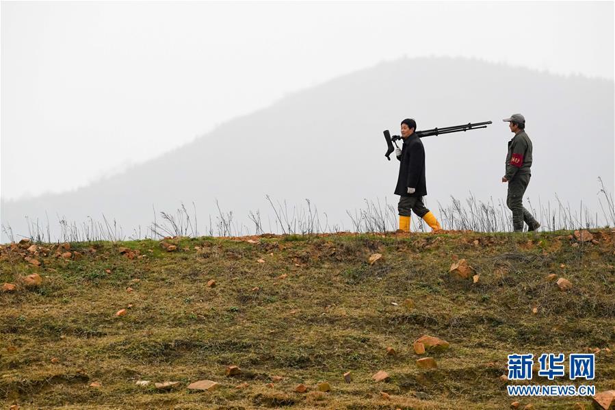 12月22日,王三益(前)在菜子湖濕地觀測(cè)候鳥(niǎo)。 新華社記者 張端 攝