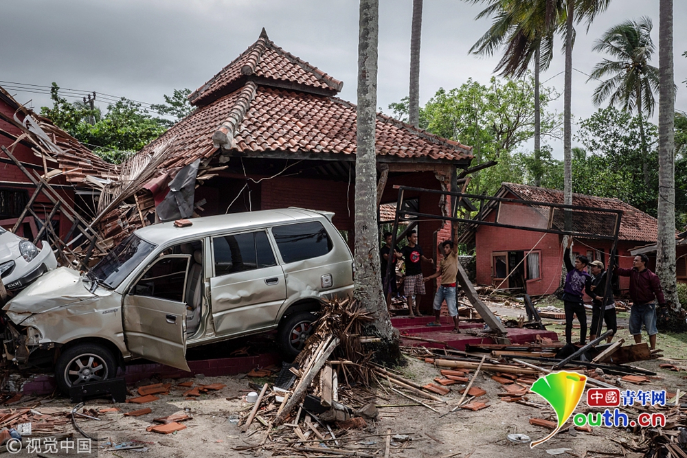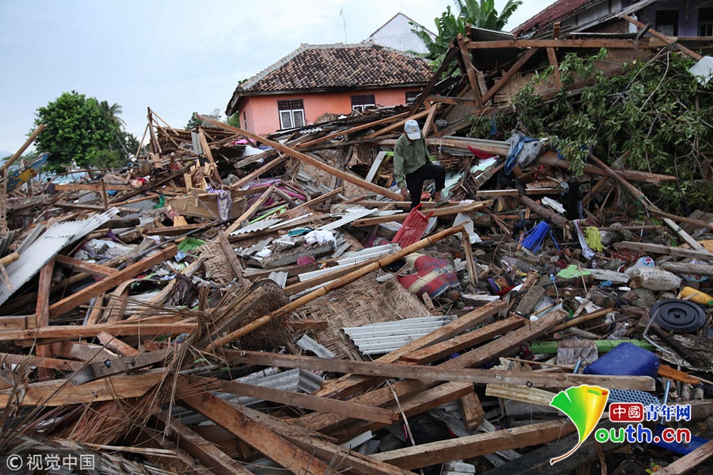 當(dāng)?shù)貢r(shí)間2018年12月24日,印度尼西亞萬丹省卡里塔,現(xiàn)場(chǎng)遍地廢墟,一片狼藉。22日夜間的一次海嘯襲擊了印度尼西亞爪哇島西海岸。印尼國家災(zāi)難機(jī)構(gòu)24日表示,印尼火山引發(fā)的海嘯造成的死亡人數(shù)已經(jīng)上升至373人,1000多人受傷。