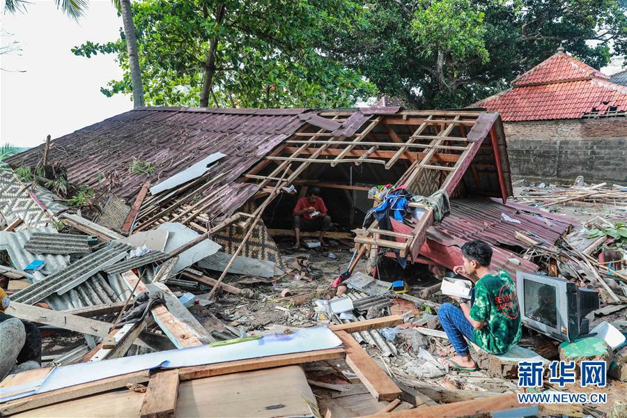 這是12月24日在印尼萬丹省拍攝的被海嘯沖毀的房屋。 印度尼西亞抗災(zāi)署發(fā)言人24日說,印尼西部巽他海峽海嘯死亡人數(shù)已經(jīng)上升至373人。 新華社記者 張可任 攝