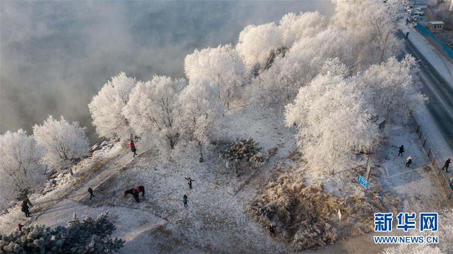 這是在吉林省吉林市豐滿區(qū)吉豐東路松花江畔拍攝的霧凇美景(12月12日無人機拍攝)。 新華社記者張楠攝