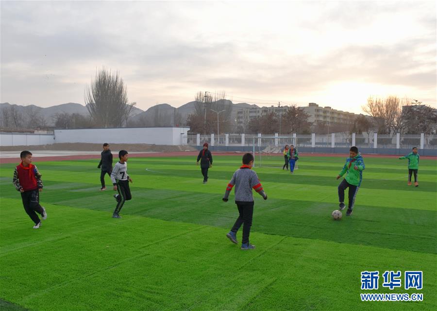 烏什·衢州小學(xué)學(xué)生在操場上踢球(12月19日攝)。