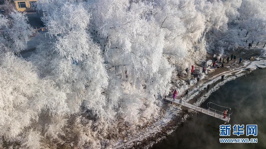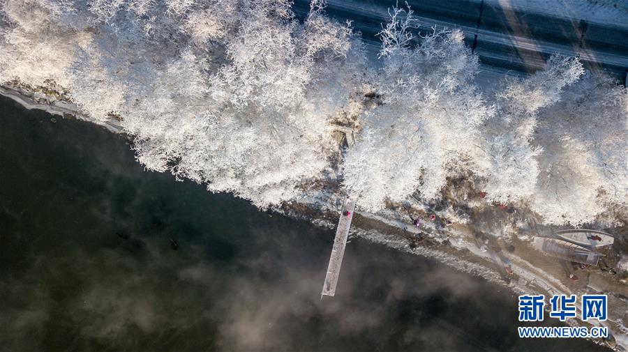 當(dāng)日,吉林省吉林市出現(xiàn)霧凇景觀,松花江畔的樹(shù)木仿佛披上了銀色盛裝。
