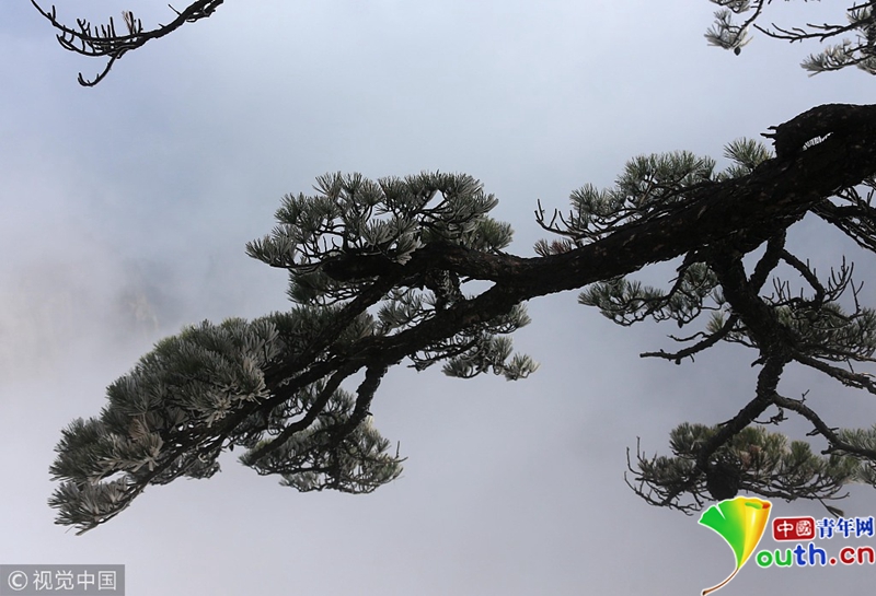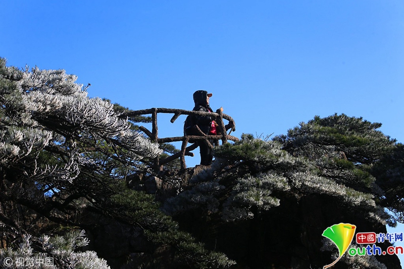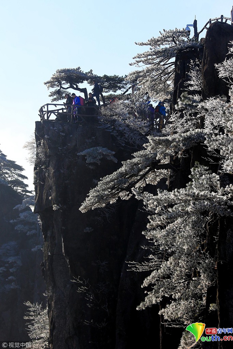 4月15日,安徽黃山出現(xiàn)了四月陽(yáng)春罕見(jiàn)的霧凇奇觀。圖片作者:施廣德/視覺(jué)中國(guó)