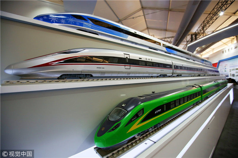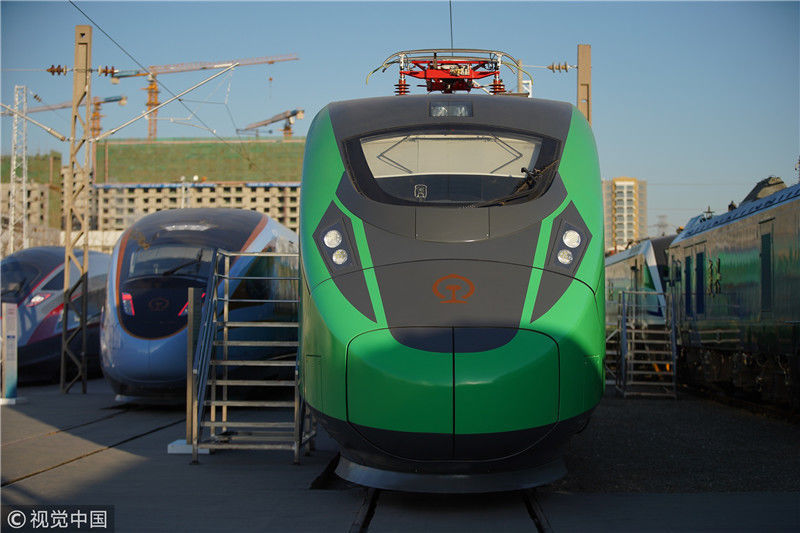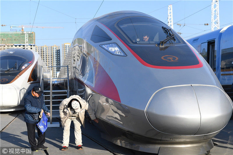 2018年12月24日,北京,中國鐵路科技創(chuàng)新成果展在國家鐵道試驗中心舉行。新型復興號動車組實車首次公開亮相,現(xiàn)場體驗乘車運行。視覺中國