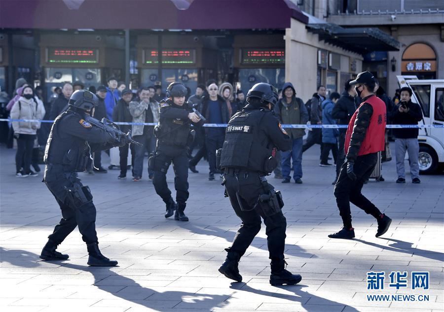 12月25日,市民觀看處置突發(fā)事件演練。 當(dāng)日,北京鐵路公安局、北京市公安局相關(guān)單位、北京火車站、北京急救中心等單位參加的春運(yùn)安保演習(xí)在北京火車站廣場舉行。演習(xí)包括處置突發(fā)事件、急救、治安維持、現(xiàn)場疏導(dǎo)等項(xiàng)目,保障春運(yùn)期間旅客平安出行。 新華社記者 李欣 攝