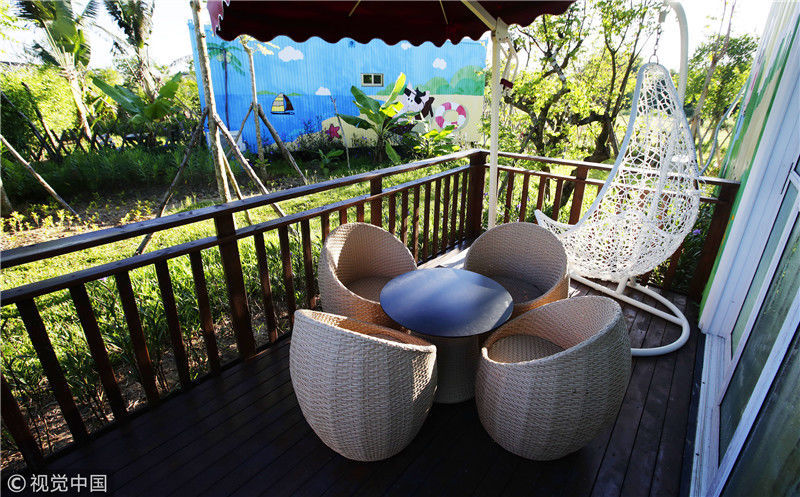 2017年8月9日,海南屯昌,坡心鎮(zhèn)豬哈哈的農(nóng)場正式推出“集裝箱客房”項目,這也是海南首家主題式集裝箱住宿。齊淼/視覺中國