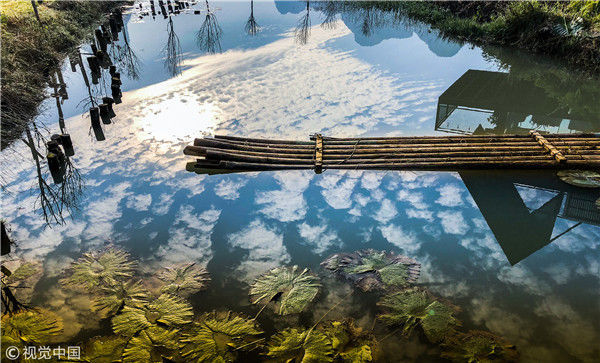 2018年12月18日,廣西桂林,陽朔縣遇龍河畔。晨光中的泡泡屋配套景觀。棋簿紫/視覺中國